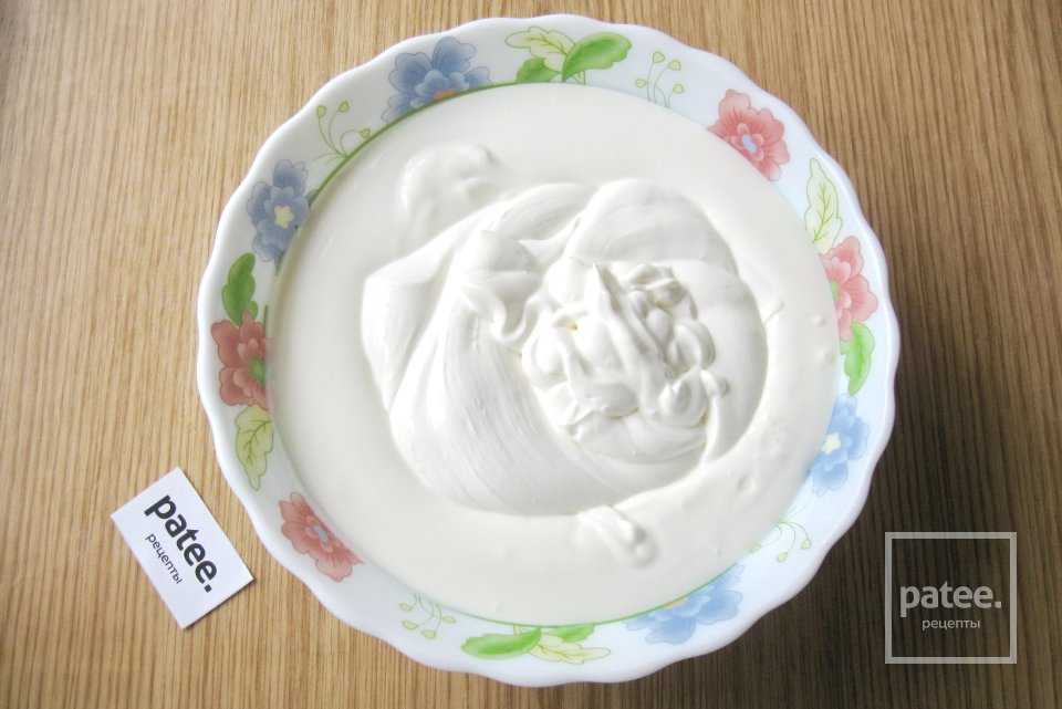 Затем достаём из холодильника более жирный крем на деревенской сметане