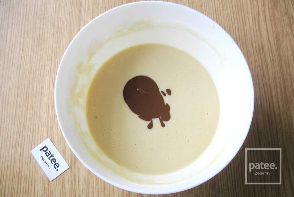 - Растопить сливочное масло в глубокой емкости, влить в нее молоко, какао и все перемешать до однородной консистенции.