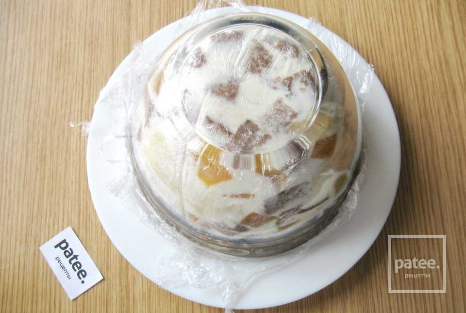 Готовому торту нужно дать пропитаться не мене 3 часов. Убираем его в холодильник.