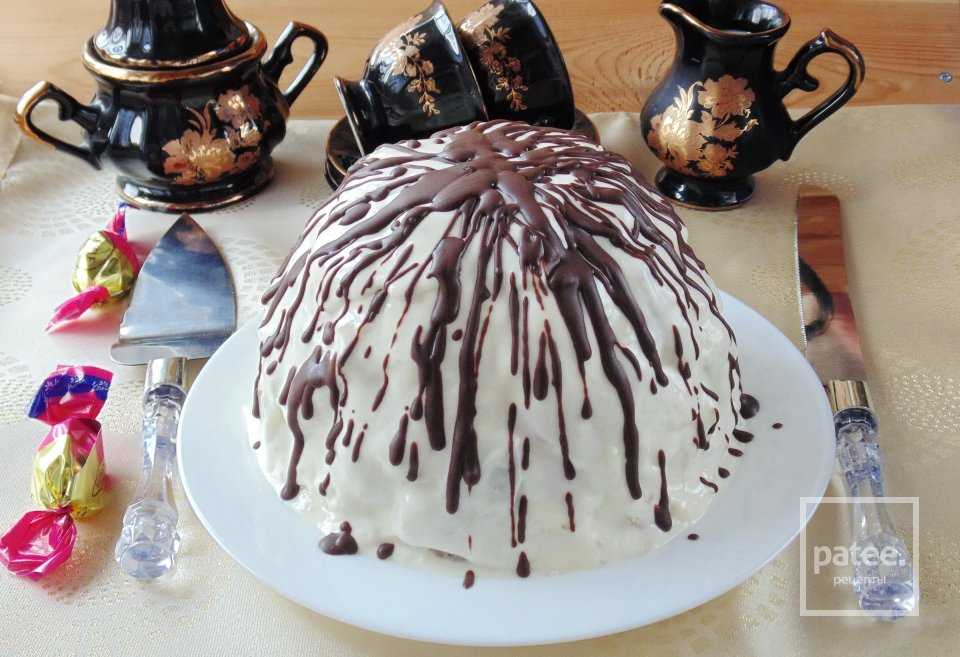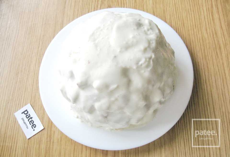 и при помощи лопаточки обмазываем торт, придавая ему полукруглую форму или форму горки.