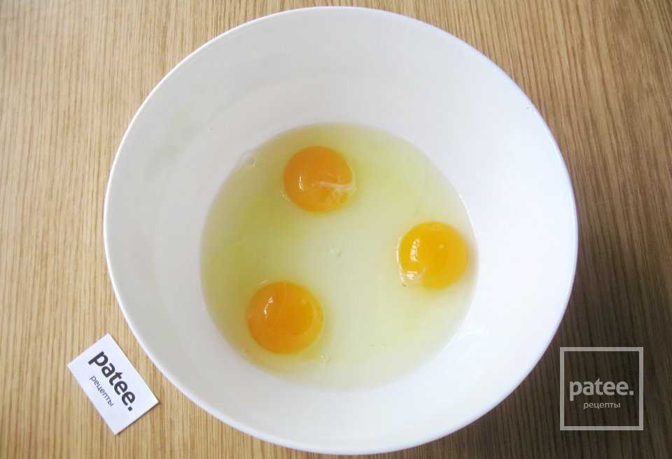 В чашу миксера вбиваем все яйца. Яйца лучше взять комнатной температуры, поэтому лучше их заранее достать из холодильника.