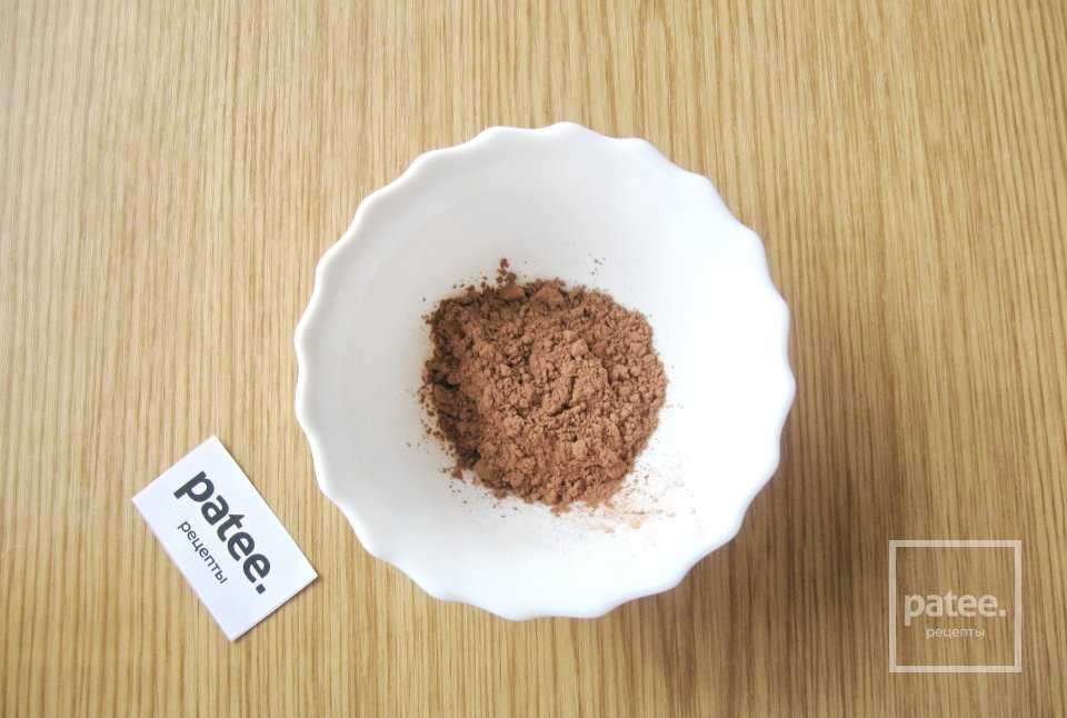 В отдельной миске смешиваем 200 г муки, 4 столовые ложки какао и чайную ложку разрыхлителя.
