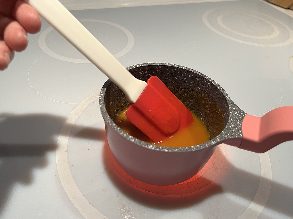 - силиконовая лопаточка — можно и без неё, но с ней удобнее перемешивать смеси, в том числе, активировать крахмал, да и дно ковшика не будет поцарапано,