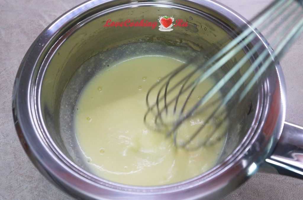- Далее массе надо дать немного остыть, после чего можно использовать по назначению для начинки кондитерских изделий или пропитки коржей.