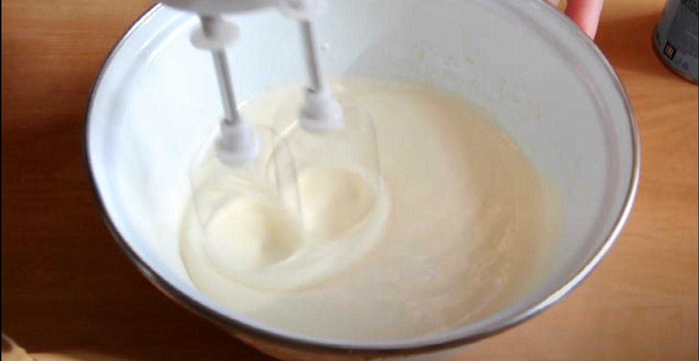 - Взбиваем миксером, чтобы разбились все комочки в тесте.