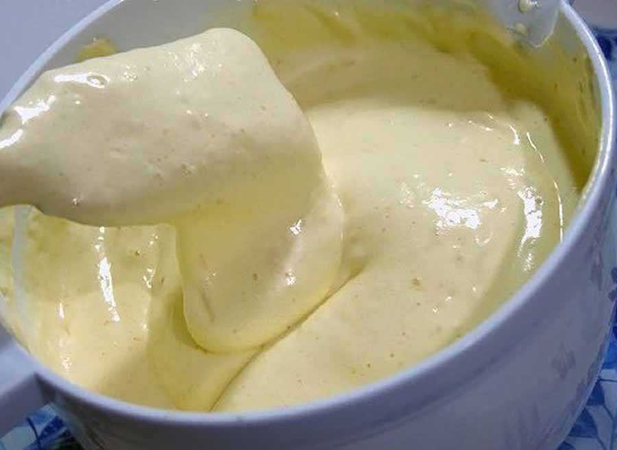 Когда смесь станет горячей добавляем сливочное масло, продолжаем помешивать, не давая крему закипеть. Готовый крем напоминает по консистенции сметану.