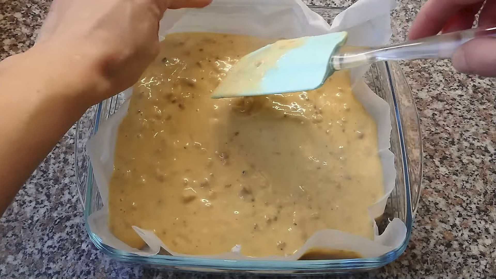 - В форме застелить пергаментом дно и выложить тесто, выпечка происходит в течение 55 минут при температуре в 170 гр.