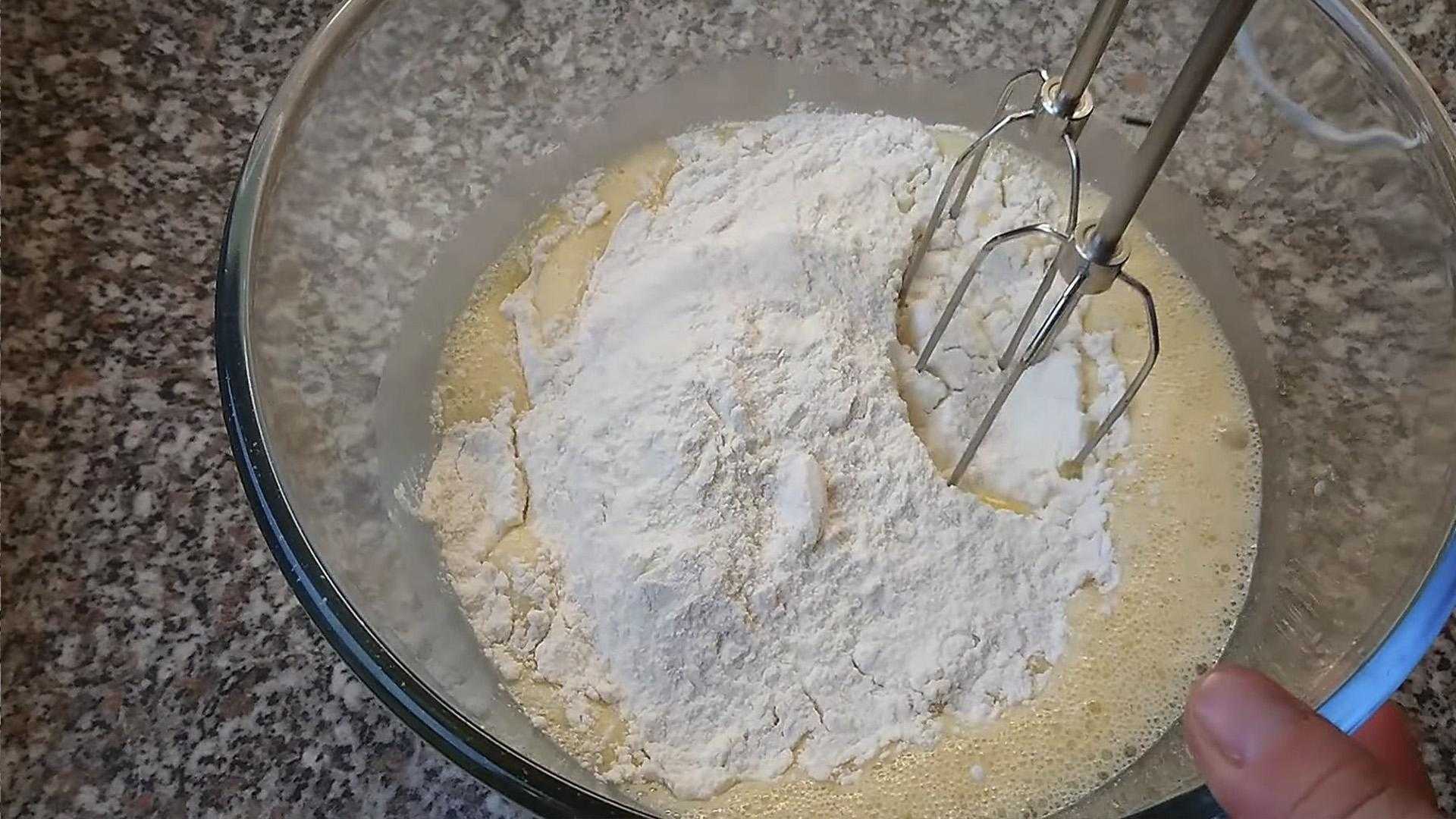 При этом желательно чашу, в которой заводим тесто, постоянно поворачивать по часовой стрелке. Таким способом можно быстрее и равномернее соединить все три ингредиента в единое нежное тесто.