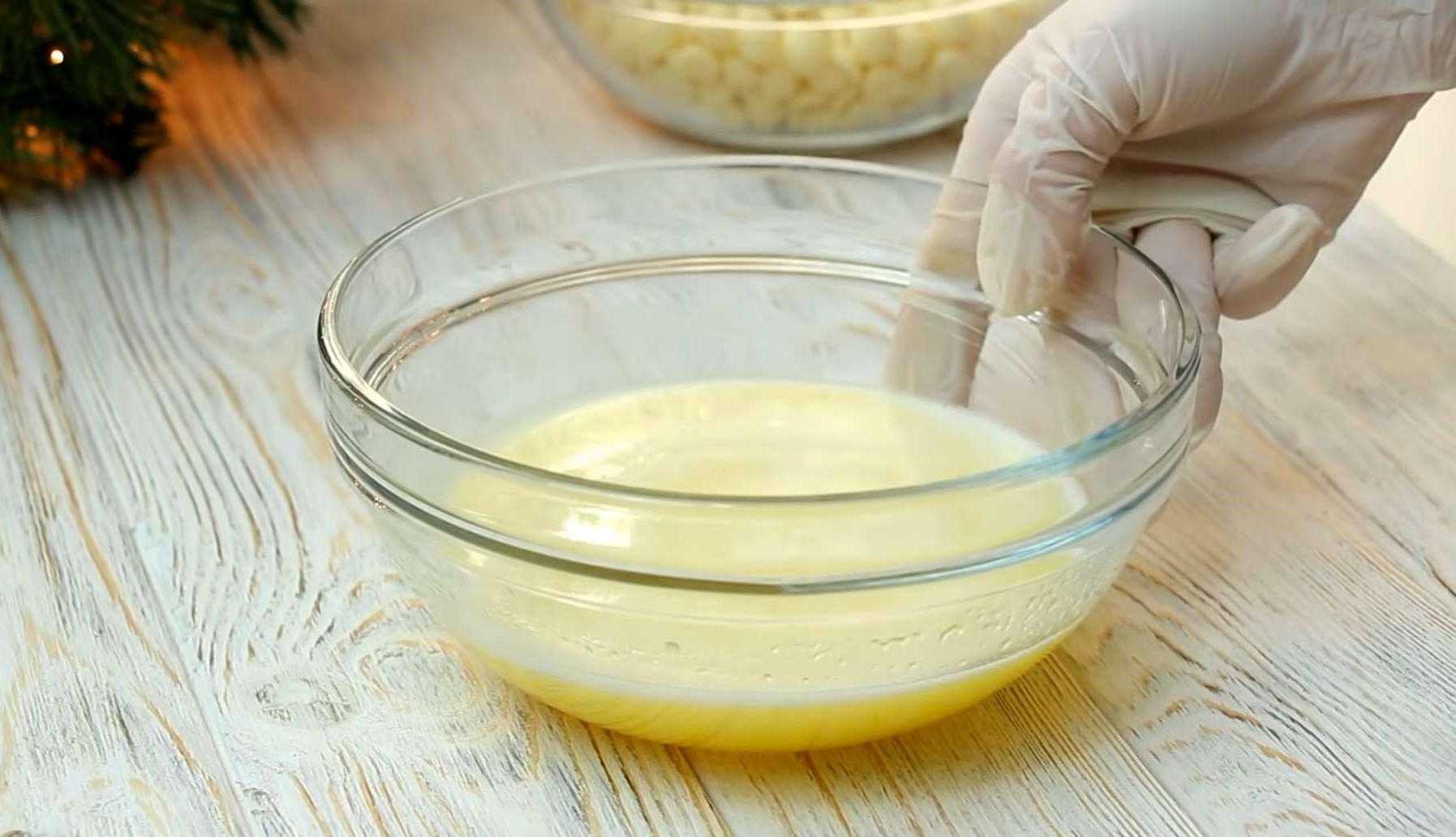 - Белый шоколад можно легко перегреть, тогда он свернется и расслоится на какао-масло и другие составляющие. Чтобы этого не произошло, ингредиент доводят до жидкого состояния на паровой бане или в микроволновой печи.