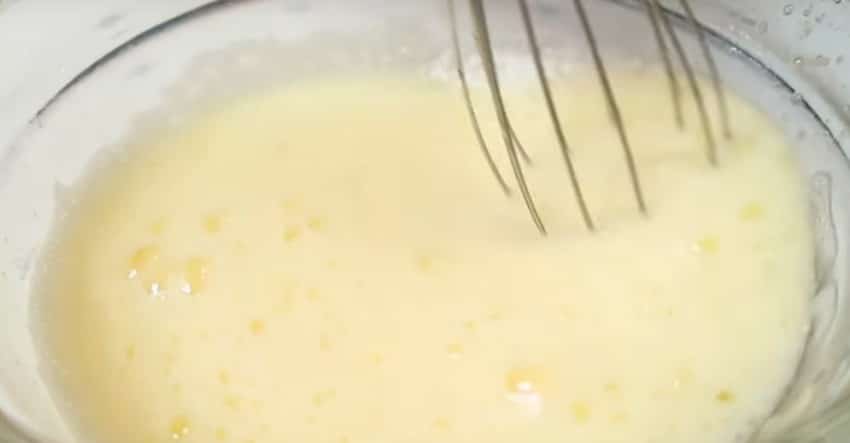 1. Яйца взбейте с сахаром до образования пышной светлой пены. Отдельно вскипятите молоко со сливочным маслом.