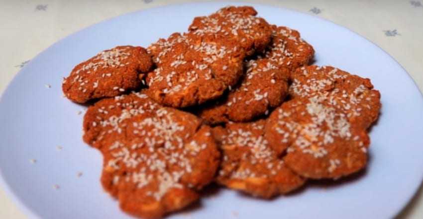 - Выложите безглютеновое кукурузное печенье на противень смазанный маслом и выпекайте в духовке полчаса при 180°С.