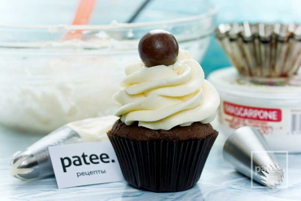 Крем из маскарпоне и сливочного масла по вкусу одинаково хорошо сочетается как с белым, так и с шоколадным тестом.