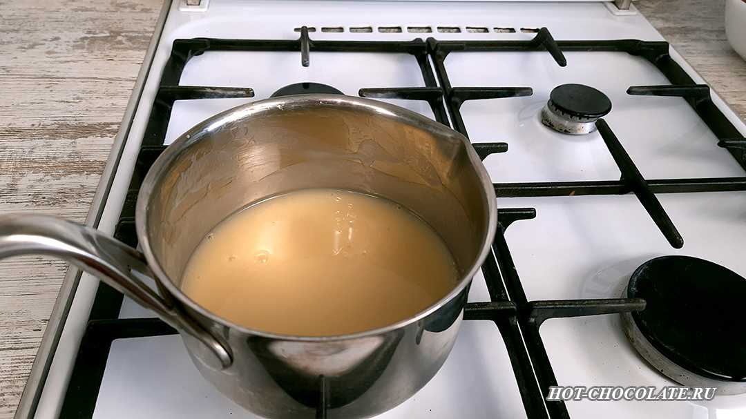 Выключаем огонь и оставляем молочный сироп остывать, периодически перемешивая его. Тёплый сироп можно поставить в холодильник, чтобы он быстрее остыл.
