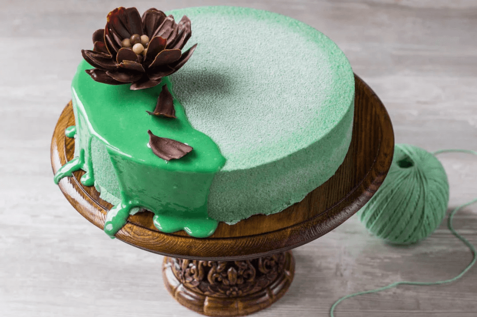 Для красивой прослойки и хорошо распределенного вкуса нужно остывший мятный бисквит разрезать на три коржа. С бортиков формы сформировать кольцо с небольшим зазором (около 1 см) от коржа. Сделать это следует так, чтобы жидковатая масса, которой заливается пирог, не просочилась наружу.