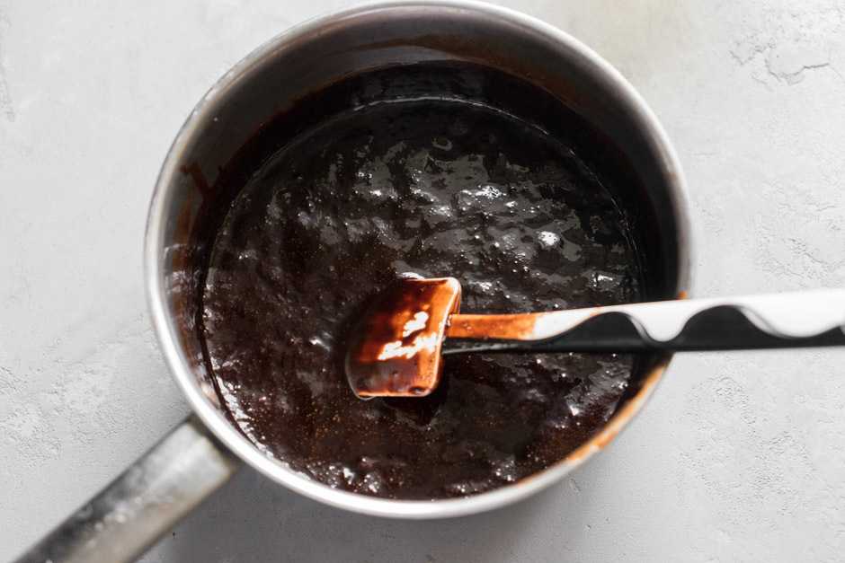 Добавляем горький шоколад и перемешиваем до его растворения.