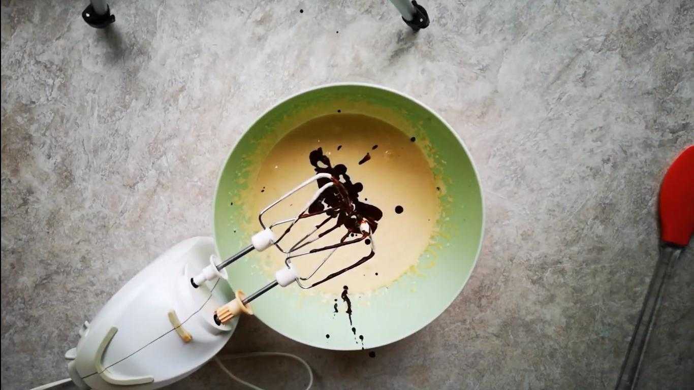 Самым последним идёт кипяток. Бисквитное тесто для шоколадного торта готово.
