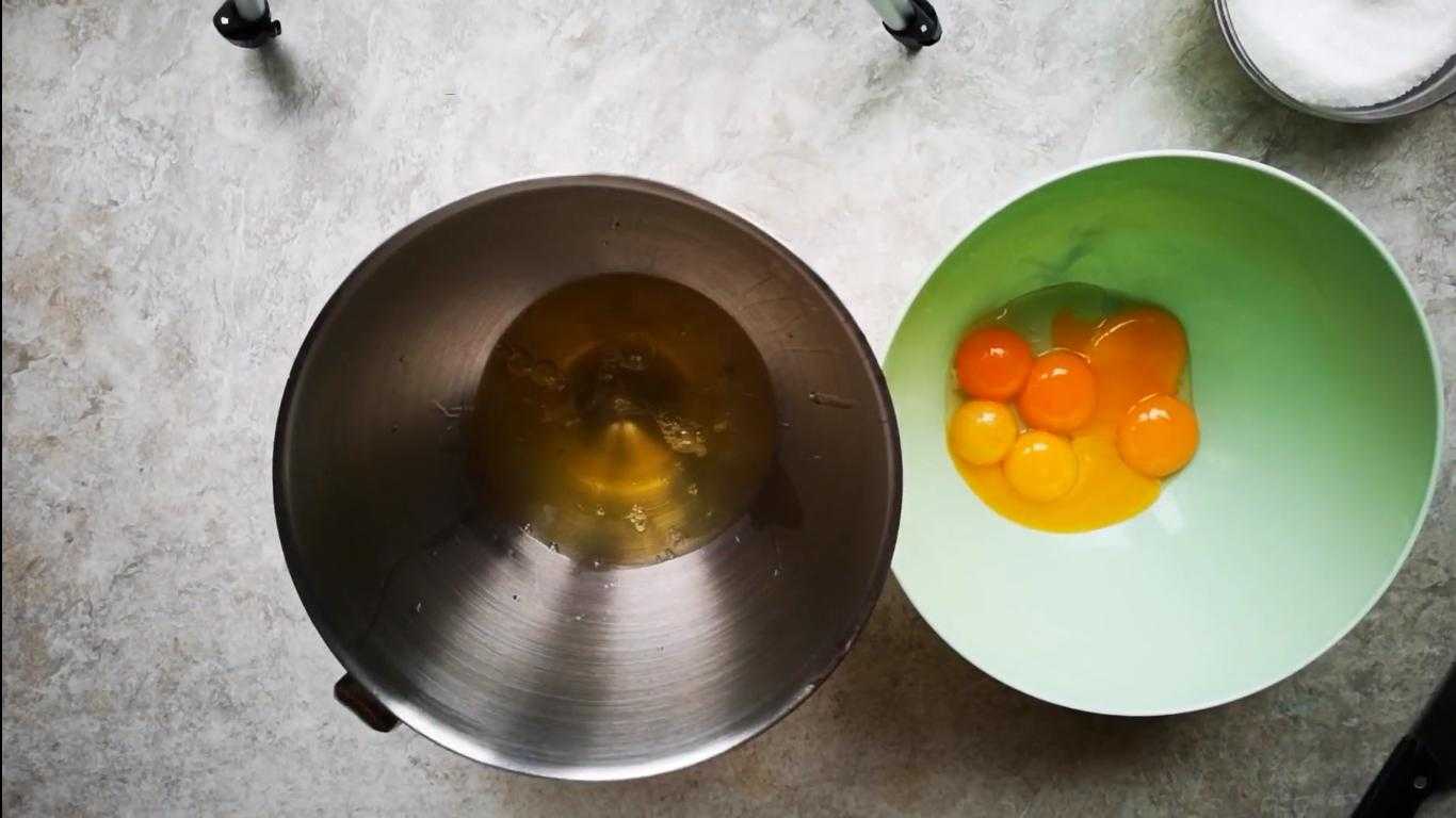 На этом этапе очень важно, чтоб в емкость с белками не попала вода или желток