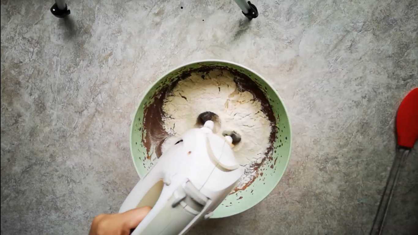- В отдельной миске смешиваем муку с крахмалом и разрыхлителем, и просеиваем в шоколадную массу. Снова аккуратно перемешиваем лопаточкой до объединения компонентов.
