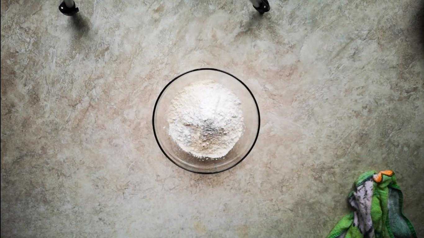 В отдельную миску просеиваем муку и добавляем туда разрыхлитель.