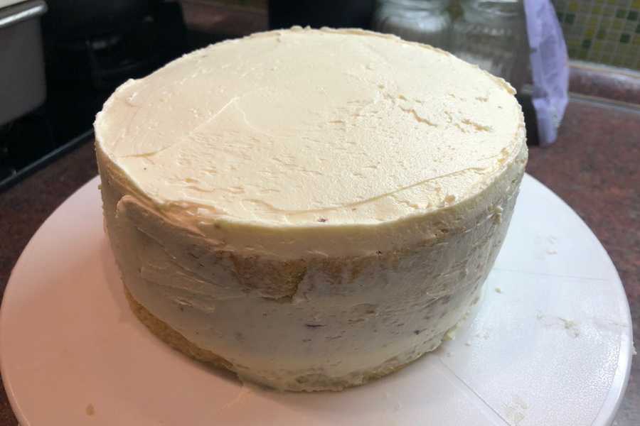 - После этого достаньте крем из холодильника и еще раз тщательно взбейте его. Теперь им можно обмазывать коржи.