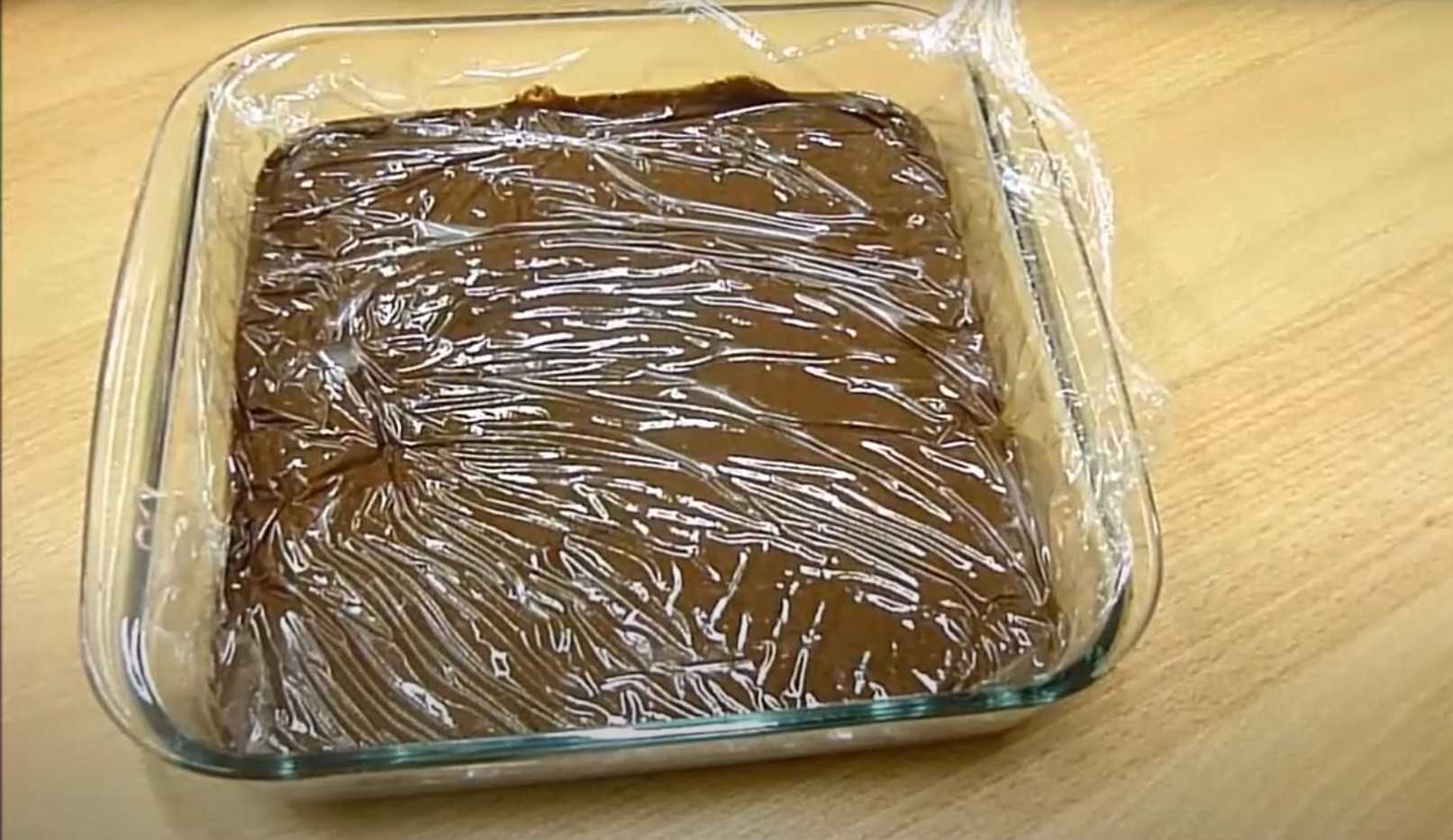 Переливаем смесь в глубокую тарелку, накрываем пленкой «в контакт» и оставляем остывать до комнатной температуры.