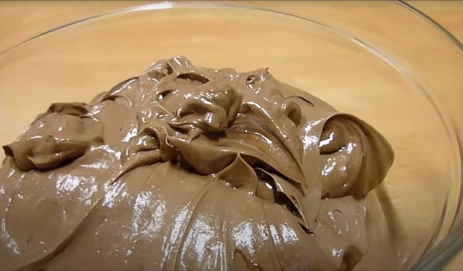 Размягчённое сливочное масло нужно взбивать отдельно. В отдельной ёмкости (в кастрюле) готовится молочный сироп, который затем соединяется с маслом. Часть крема должна быть шоколадной, так что в неё добавляется какао или шоколад.