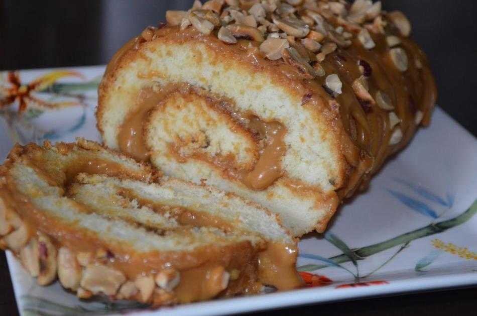 - Смажьте его сливочным сыром или вареной сгущенкой (начинку выбирайте по вкусу) и посыпьте сверху большим количеством дробленого ореха.