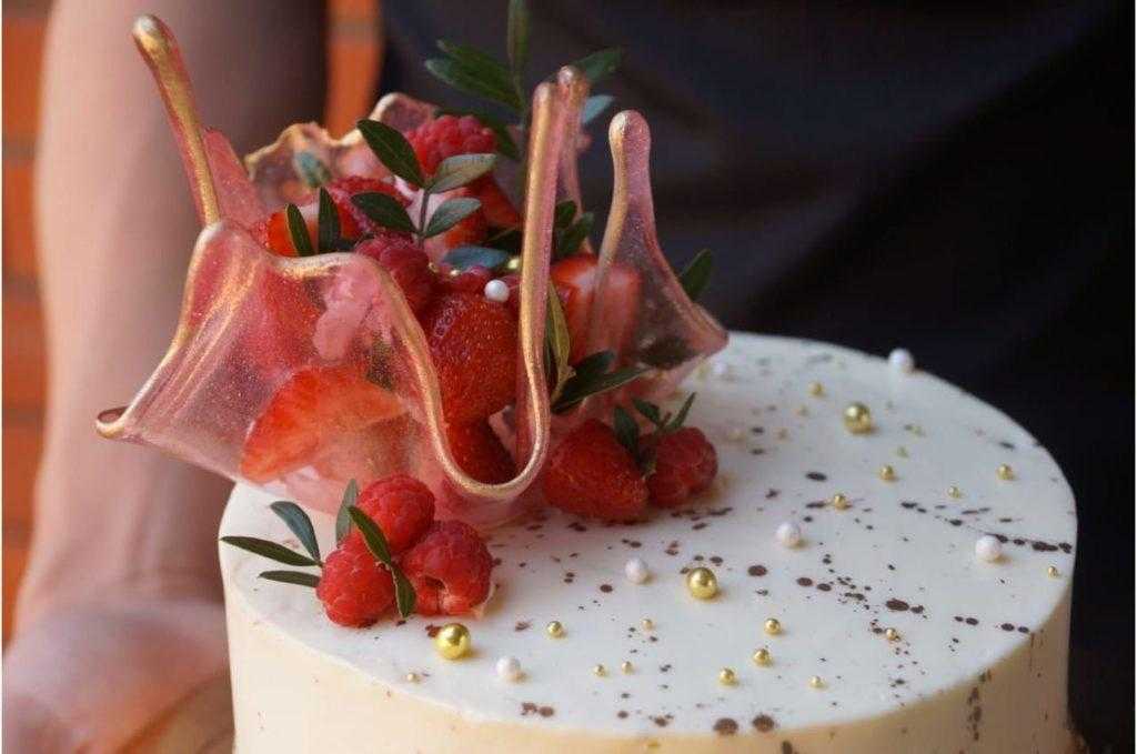 Устанавливать декор лучше на торты и пирожные с масляными кремами, шоколадной глазурью. Если в покрытие есть вода, она может растворить изомальт. Поэтому дно вазы надо предварительно окунуть в шоколад, создав сладкую защитную пленку и дополнительно закрепив декор.