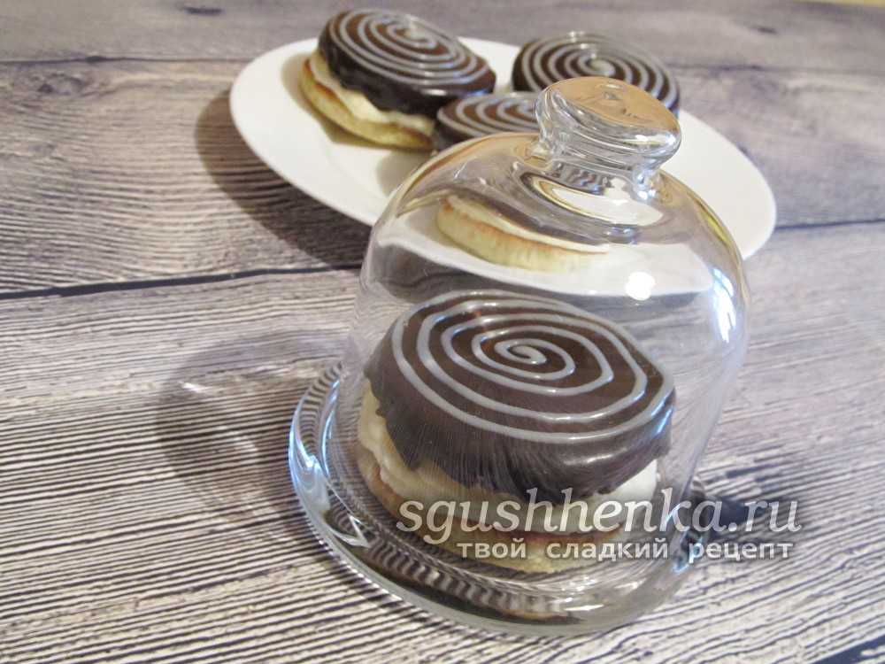 Верхняя глазурь застынет, а начинка — пропитает бисквитики.