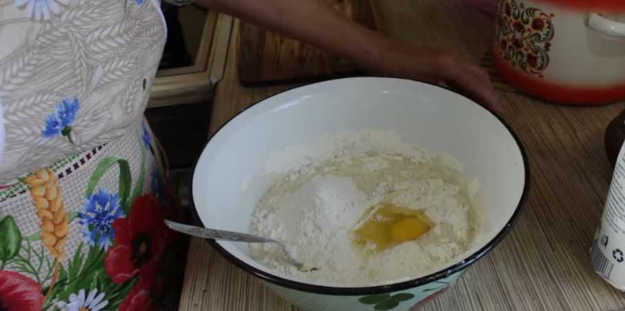 Добавим яйца, соль и сахар и гашеную соду в муку