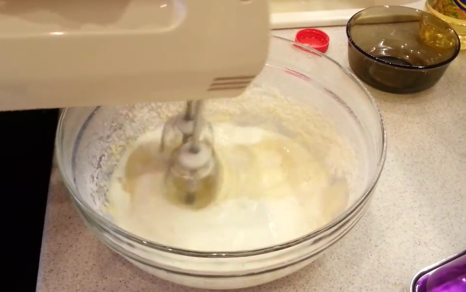 Компоненты хорошо взбиваем миксером, венчиком или просто вилкой. В итоге должна получиться пышная пенная масса без кристалликов.