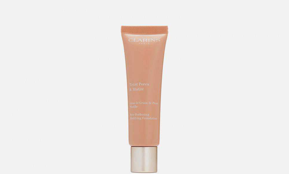 Длительный матирующий эффект и идеально выровненный тон кожи – именно так позиционируют разработчики свой тональный крем Clarins Teint Pores & Matte. За счет активных компонентов акации и красной глины этот крем способен скрыть многие недочеты кожи и придать ей красивый тон.