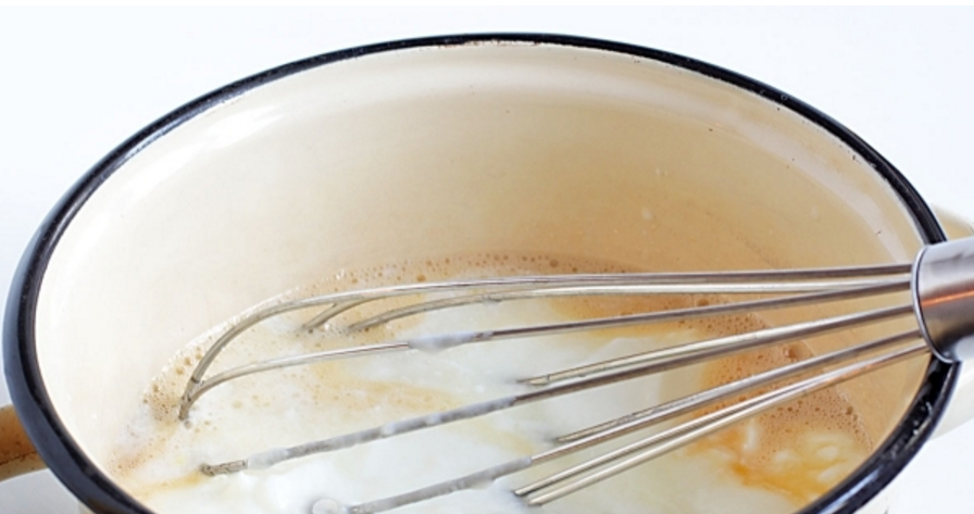 - Растопите на бане шоколад. Перелейте в молоко, взяв половину от количества, указанного в рецепте, размешайте смесь. Это темный слой.
