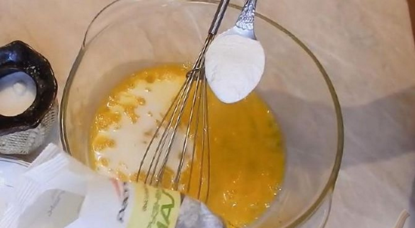 Перемешать ингредиенты для омлета. В последнюю очередь добавить крахмал.