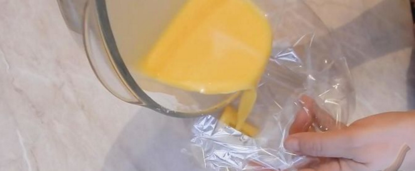 В рукав для запекания (предварительно завязать нижнюю часть) вылить омлет.