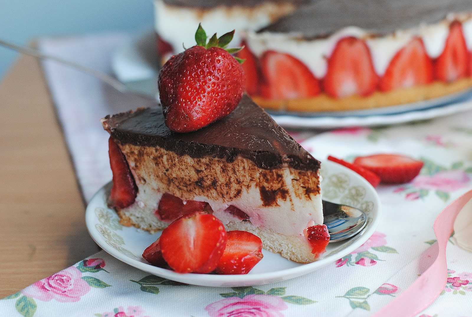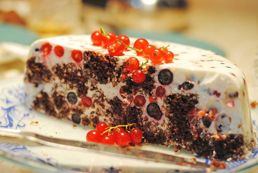 На этапе, завершающем формирование суфле, основа торта должна находиться в разъемном кольце. Остается выложить сверху изделия образованный крем, вновь отправить собранный десерт в холодильник для окончательного застывания.