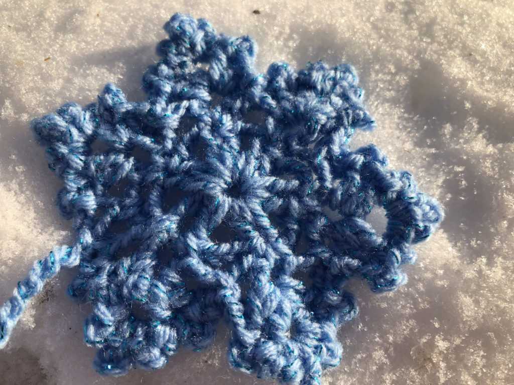 Когда на каждой спице останется по три петли, стягиваем их с помощью крючка и закрепляем нить с изнаночной стороны. Прячем и закрепляем нить от набора петель.