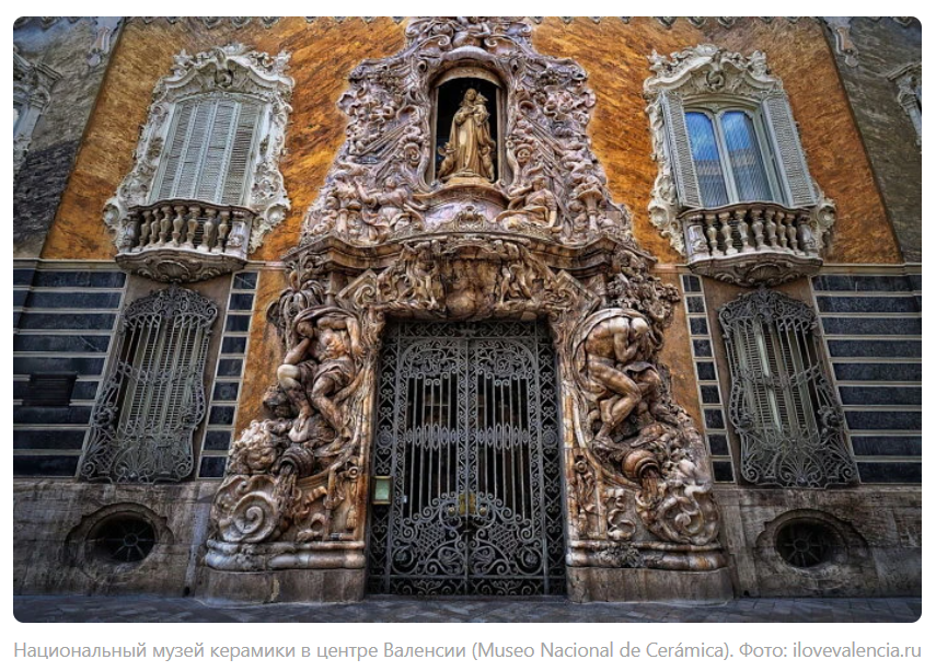 Славится Валенсия и своим фарфором. Из него делают не только изящную посуду и предметы интерьера, но и украшения. В самом центре города находится Национальный музей керамики, который расположен в здании особняка Маркиза Де Дос Агуас. Здесь можно познакомиться с бытом высшего общества прошлого, увидеть и керамику, и мебель, и драгоценности.