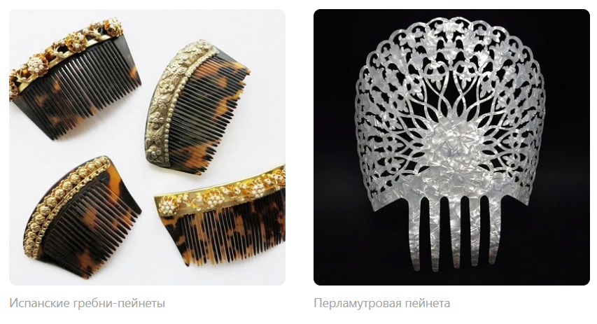 Особого внимания заслуживает прическа с использованием традиционного гребня-пейнеты и кружевной накидки-мантильи. История их уходит вглубь веков и несет в себе отголоски арабских завоеваний. Пейнета традиционно изготавливалась из черепахового панциря или слоновой кости, богато украшалась резьбой. Классическая пейнета — это гребень с 5-6 зубцами, 20 см высотой. В наши дни испанские женщины носят эти гребни по праздникам и другим особым случаям