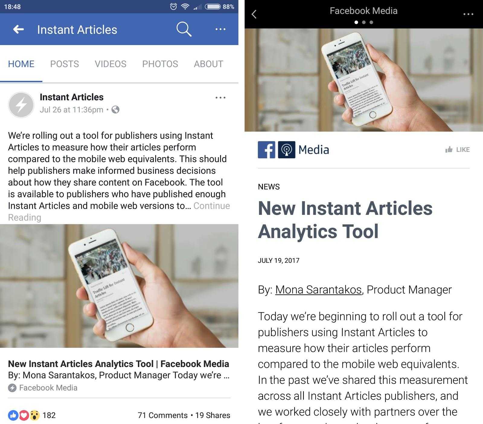 Instant Articles — мгновенные статьи — это формат, который позволяет mobile-пользователям читать статьи со стороннего сайта прямо в приложении Facebook, не выходя из него в браузер. При этом автору контента доступна аналитика, а с недавнего времени в такой статье можно разместить с CTA-кнопку, пишет Facebook for Developers.