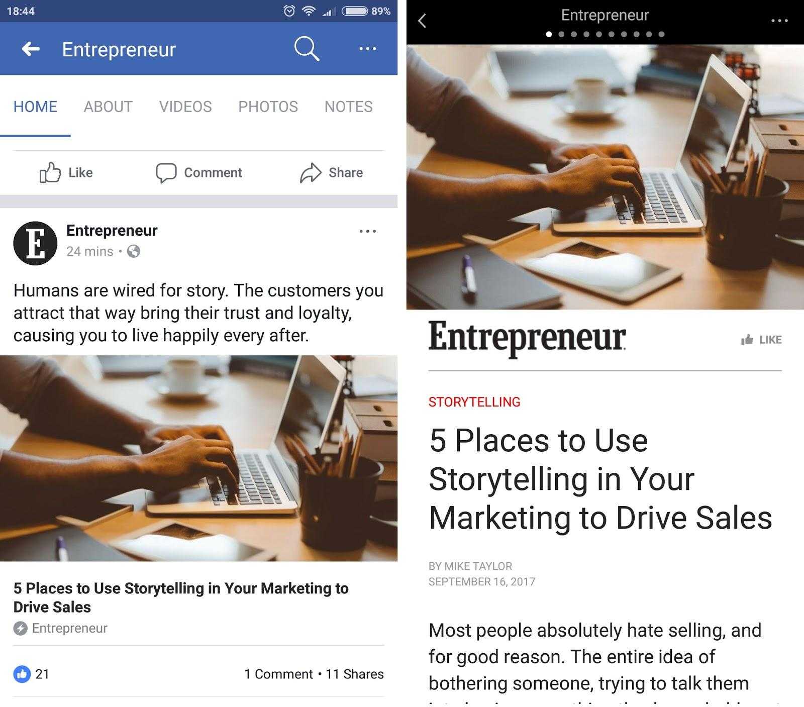 Instant Articles активно использует, к примеру, Entrepreneur.