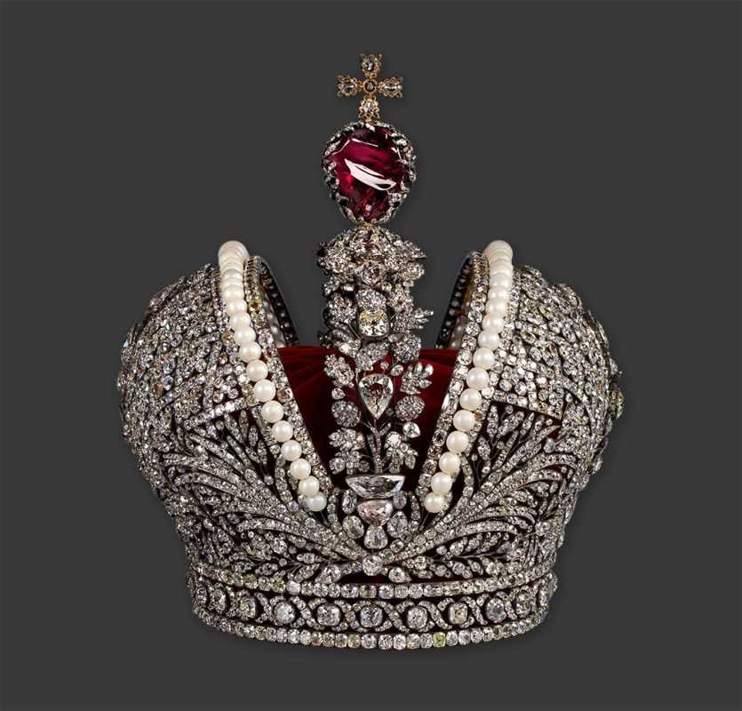 Большая Императорская Корона Российской империи – главный символ власти российских монархов. Этот выдающийся шедевр ювелирного искусства был создан в 1762 году ювелирами Жереми Позье и Георгом Фридрихом Экартом по случаю коронации Екатерины II. Корона состоит из двух полушарий, что символизирует воссоединение западных и восточных территорий Российской империи. В нижней части полушария охватывают лавровые ветви, а соединениях видны желуди как символы императорской власти и славы. Корона была изготовлена из серебра инкрустированного золотом. Ее украшает 1906 бриллиантов общим весом в 2858 карат и 75 матовых жемчужин, общий вес которых 763 карата, а в центре находится шпинель весом около 398 карат. Высота короны составляет 27,5 сантиметра, а длина по окружности 64 сантиметра.