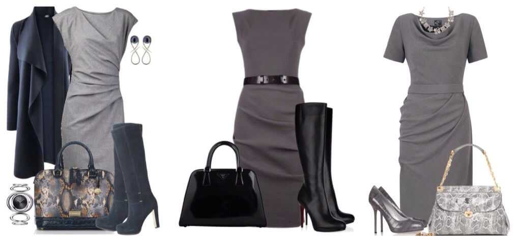 Если вы сомневаетесь, как носить серое платье на работу, то следующая фотография поможет сделать правильный выбор.