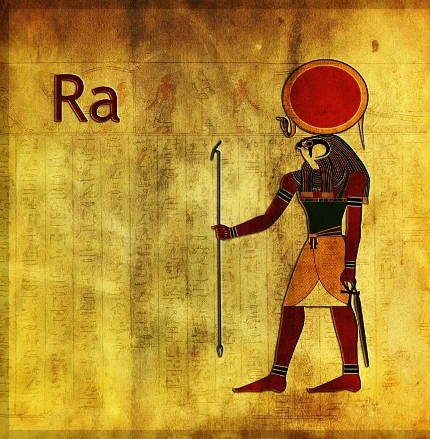 У египтян центральное место в их культуре занимал бог Ра, считавшийся создателем всего небесного. Его изображали с телом человека и головой сокола, которую украшал красный солнечный диск. Также можно встретить рисунки, где Ра плыл на золотой ладье по небосклону. Он считался не только солнечным божеством, дарующим жизнь, но и покровителем фараонов. Египтяне носили обереги в виде красного диска, наносили его на стены домов и храмов.