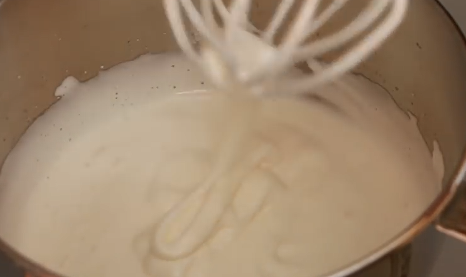 Шаг 4. Ближе к концу взбивания, добавьте 200 миллилитров молока и растопленное и охлажденное сливочное масло, и снова взбейте все миксером (лучше всего вливать молоко постепенно, не прерывая процесса взбивания).