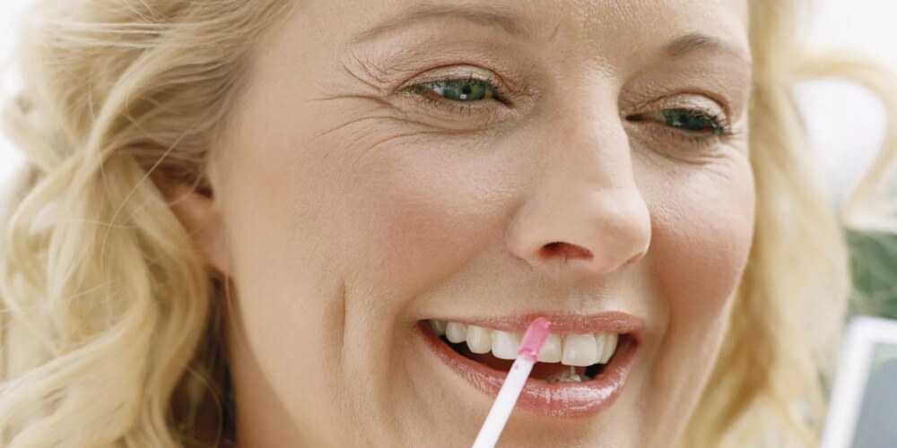 Губы категорически нельзя прорисовывать ярким карандашом. Зрительно следует добиваться большей пухлости, ведь после 40 лет плотность кожи и пухлость губ безвозвратно теряются. Нужно обвести контур бесцветным или совпадающим по тону с помадой контурным карандашом, нанести помаду нейтрального оттенка. Визуально старит алая, бордовая, темно-фиолетовая, малиновая помада. А вот использование средств для губ с эффектом объема или влажного блеска допустимо.