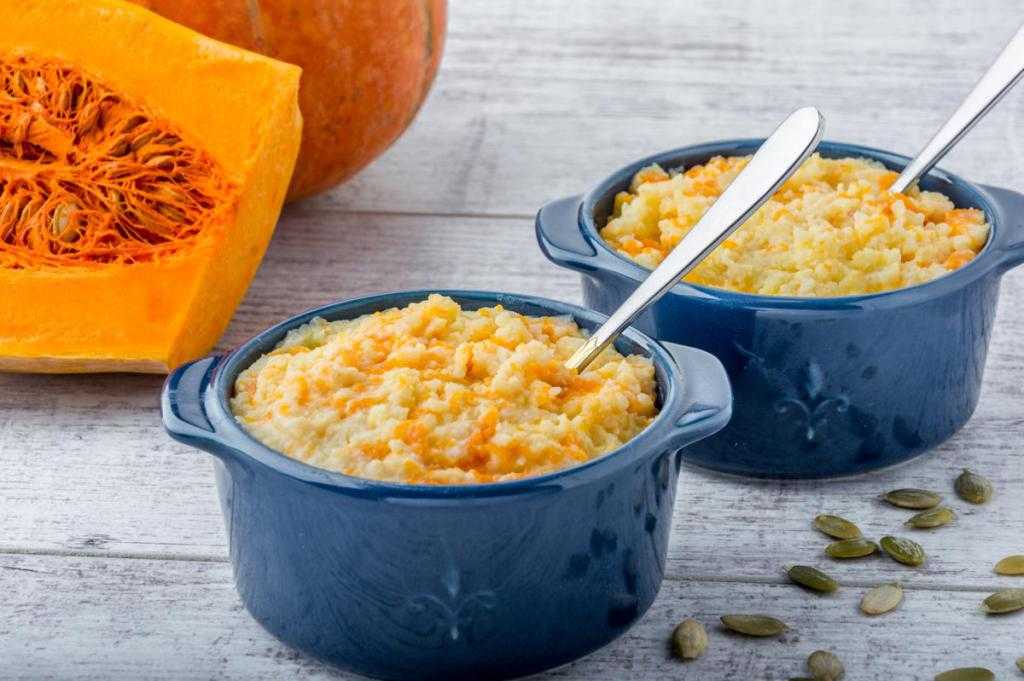 - Сначала сделать тыквенное пюре из натертой на терке мякоти. Далее овощную массу следует отварить до мягкости, добавляя пол стакана воды, немного остудить, взбить блендером.