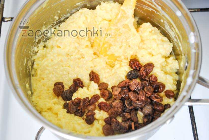 - Соединить лимонный сок с изюмом, рисом и желтками.