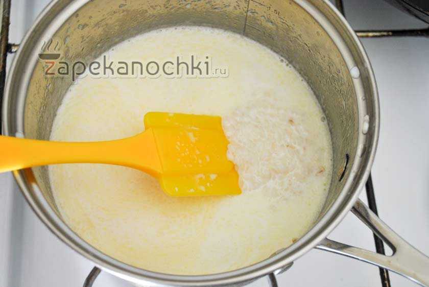 - Потомить рис с молоком на слабом огне 7 – 10 минут.