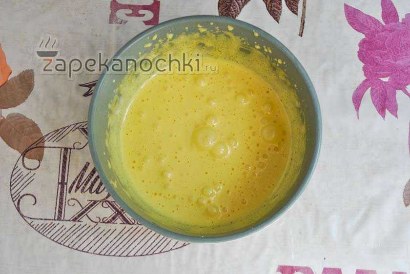 3. В миску вбить яйца, вылить кефир с майонезом, взбить.